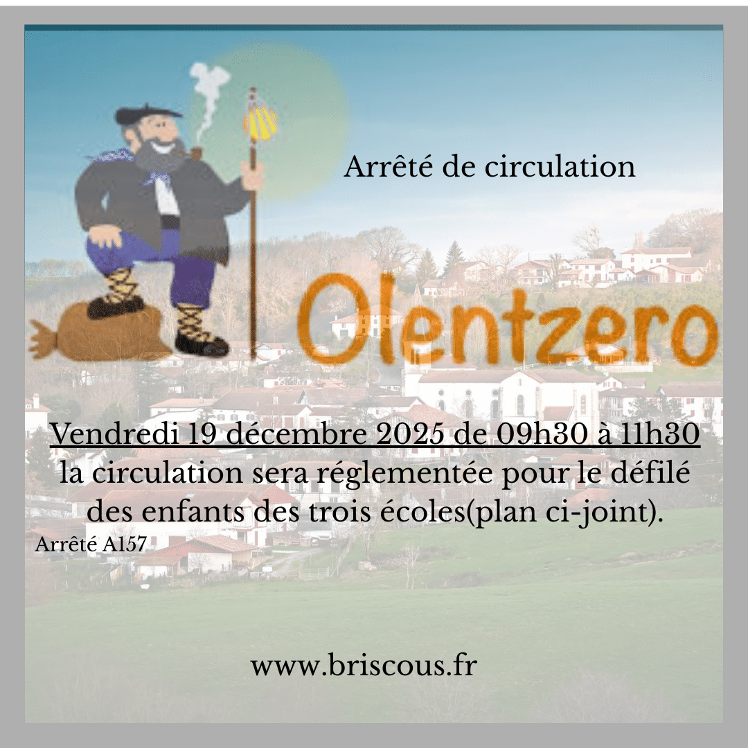 Arrêté interdisant la circulation dans le Bourg et fixant un itinéraire de détournement de la circulation Défilé pour Olentzero